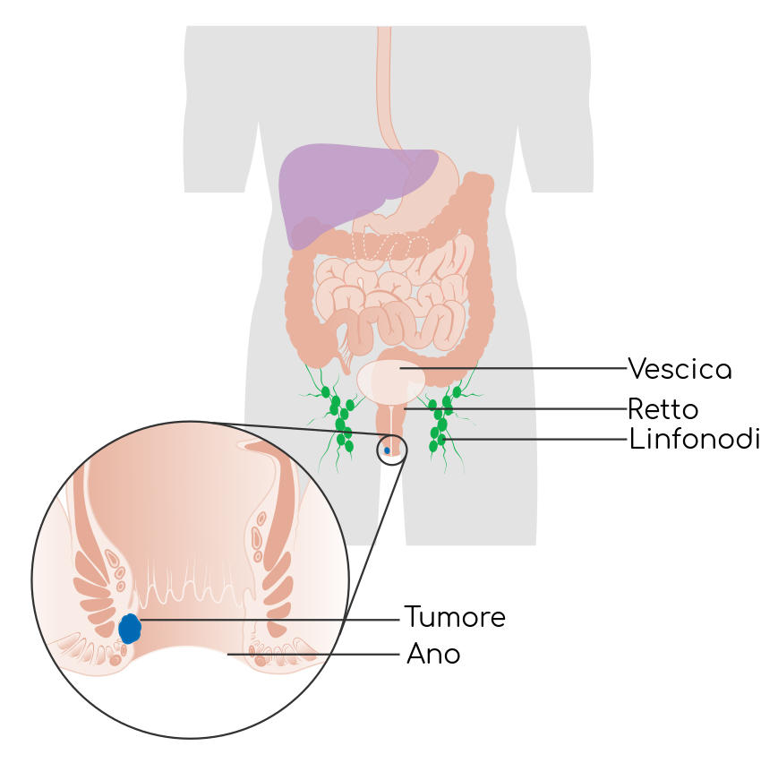 - e lo stato dei linfonodi adiacenti al canale anale/retto.
